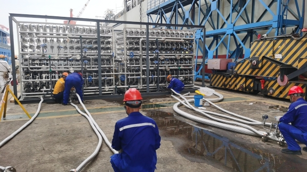 近日,靠泊南通中远海运船务一号码头的“美森卡伊”轮经过双燃料舱改装后,顺利完成LNG预冷加注作业。此次预冷加注服务作业系中兴海陆在新能源燃料加注业务拓展道路上的首次服务作业。 为积极响应中远海运重工发展新能源新赛道的号召,中兴海陆经过两年的时间市场调研和准备,努力拓展新能源燃料加注服务业务,于2024年7月完成首单业绩。 为顺利完成“美森卡伊”轮LNG加注服务,中兴海陆成立专项组,经过技术专家培训和指导,按照南通船务生产部、安监部要求,与客户经过反复沟通交流,制定安全策划、人员资质、设备、使用工具等预冷加注技术方案。 在“美森卡伊”轮加注准备期间,南通中远海运船务在施工现场拉设警戒、加强了安全全面管控,技术人员有条不紊地进行LNG加注设备连接调试、船舶LNG系统惰化干燥、预冷和加注等环节,确保加注安全。正式加注采用四车同时加注方式,总共历时约32小时,在预定时间内顺利完成加注作业。这次船东、船厂与合作方全面部署、密切配合,成功完成预冷加注作业,为公司开展新能源业务注入新动能。 中兴海陆顺应行业发展趋势,致力于持续提高新能源业务服务能力,为更多航行船舶提供更加便利、高效的服务,进一步提高公司竞争力。(张岳荣、徐旭、姚海清/文 徐旭/摄) |