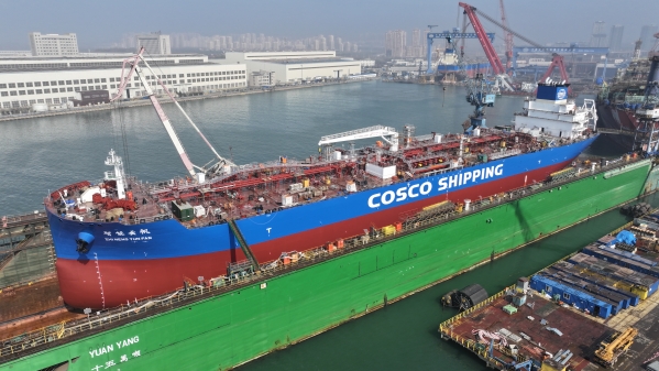 日前,大连中远海运重工在建50k载重吨MR型成品油运输船及系列80k多用途粮食运输船项目接连完成拖移下水及船台铺底节点,项目建造节点稳步推进。船东代表、船级社代表与项目组成员共同见证了船舶下水、铺底。 4月16日,为中远海运能源建造的50k载重吨MR型成品油运输船(N1222)拖移下水。4月17日,为中远海运发展建造的80k多用途粮食运输船(N1262)船台铺底。 此次下水的50k载重吨MR型成品油运输船(N1222)长182.9米,宽32.26米,深18.2米,设计吃水11米,设计航速14.0节,为系列首制船。 此前,大连中远海运重工为中远海运能源建造交付两艘49900吨成品/原油轮及一艘64900吨巴拿马型原油运输船均投入运营,船舶运行状态表现优异,船东反馈良好。 此次上船台的80k多用途粮食运输船(N1262)船总长229.95米、型宽32.26米、型深21米。该船型具备较强的货物适配性和灵活性,除粮食运输外,可为新能源汽车、锂电池、储能柜等危险货物集装箱提供运输服务。此前交付的首制船“国韵海”轮已投入运营并顺利开启北非航线,船舶的优异性能得到了船东的充分肯定。(程刚、耿飞/文 宝巍/摄)