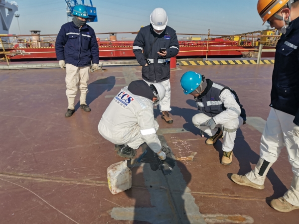 近日,中兴海陆扬州检测部承接的32.5万吨矿砂船检测项目,在中国船级社(CCS)的现场抽检中表现优异,顺利通过验收。 此次抽检使用超声波探伤检测(UT),涵盖甲板、舷侧等重要结构部位的焊缝,现场检测过程中,检测人员认真严谨操作设备,对抽检部位焊缝逐一检测,所有受检焊缝经专家审核均符合相关规范标准,合格率达到100%,充分体现了检测人员过硬的专业水平。 此次抽检的顺利通过,是对中兴海陆扬州检测部技术实力与服务品质的再次肯定。未来,部门将继续强化检验检测能力,不断提升服务水平,以更专业、更可靠的技术保障,为船舶建造与运营安全保驾护航。(张皓宇/文 袁祝卫/摄) |