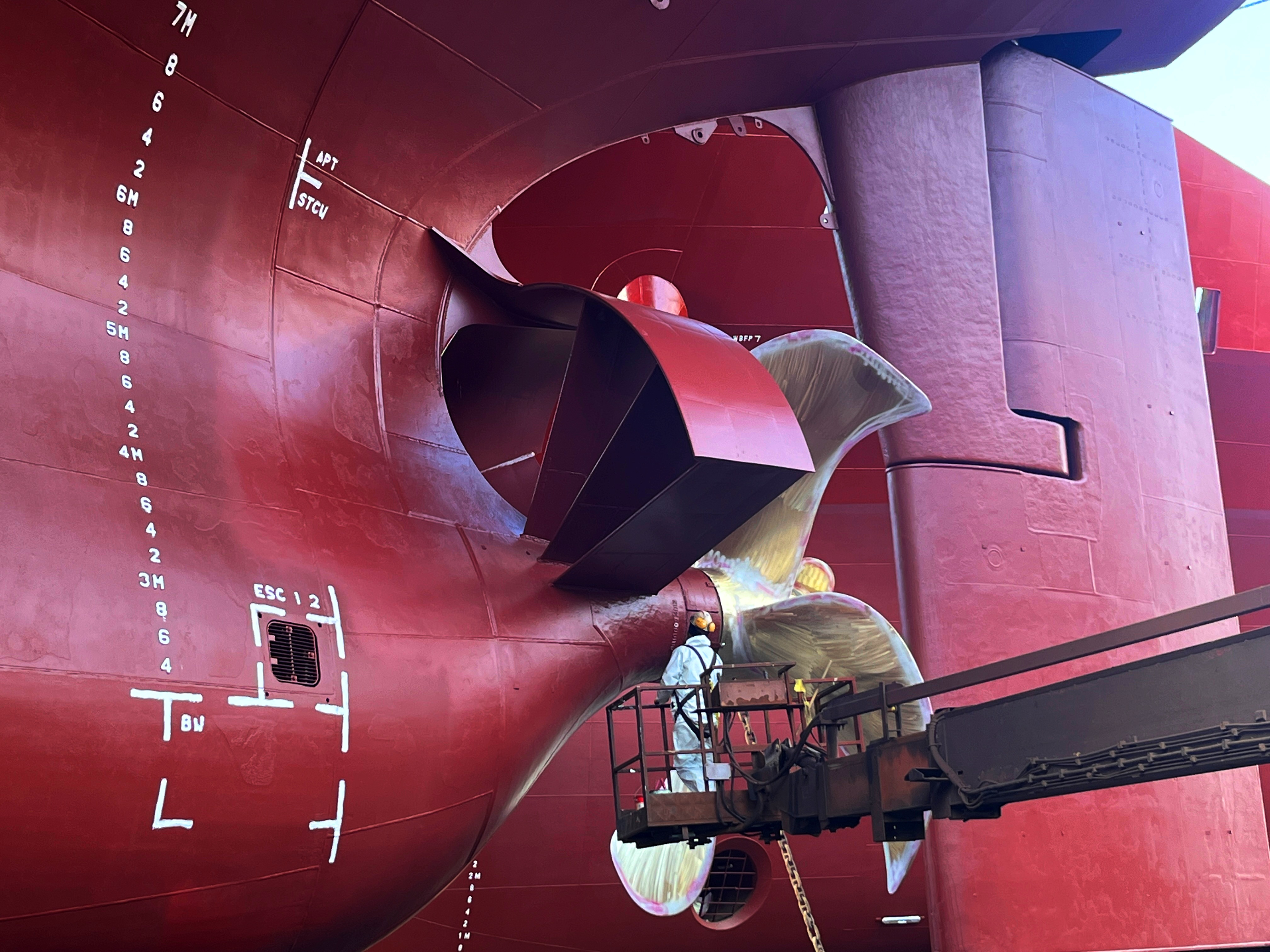 近日,在土耳其TK Tuzla 船厂浮船坞内,随着最后一处焊缝打磨补漆作业顺利完成,南通远洋配套承接的ALYARMOUK轮艉部节能导管及消涡鳍安装工程圆满收官。该项目是公司首次在境外船厂开展艉部节能装置安装工作,标志着公司在海外技术服务能力上实现新突破。安装过程中,服务团队的专业表现赢得了国外客户的一致好评。 此次安装的节能装置,是依据该轮船艉流场特性量身定制的节能导管与消涡鳍。其中,机翼形截面的扇形导管可有效引导水流、优化艉部流场分布;安装在螺旋桨后缘的消涡鳍能够消除毂涡、回收艉流能量,实现降低能耗、提升推进推力的双重效果,为船舶绿色高效运营提供有力支撑。 项目筹备阶段,由于是首次赴境外船厂开展安装指导工作,团队提前梳理施工流程、作业难点及精度控制要求,细化完善安装工艺文件。针对艉柱φ80圆钢更换作业中,艉部冷却水舱及艉尖舱切割后难以保障密性的难题,服务团队主动与船东沟通对接,获取船艉结构图纸,经多轮技术研讨,确定内部焊接施工方案,并同步制定外部焊接备选方案,为项目安全有序推进筑牢技术保障。 安装实施期间,项目历经导管吊装定位、余量修割、结构焊接、无损检测、吊耳拆除及补漆防护等全流程工序,历时 7天高效完成全部作业。服务团队严格按照《节能导管安装工艺》规范,对基准线测绘、轴系找中、导管定位、焊接施工等关键环节从严把控、精益求精,以严谨细致的工匠精神确保每道工序精准到位,实现节能导管与船艉结构完美契合。 此次海外安装工程的圆满成功,是南通远洋配套深耕船舶节能领域、助力行业绿色转型的生动实践。截至目前,公司已累计完成200余套船舶节能装置的安装应用。未来,南通远洋配套将持续聚焦船舶节能技术的推广应用,以技术升级赋能航运低碳发展,为全球航运业绿色转型持续注入新动能。(孙增龙 文/摄) |