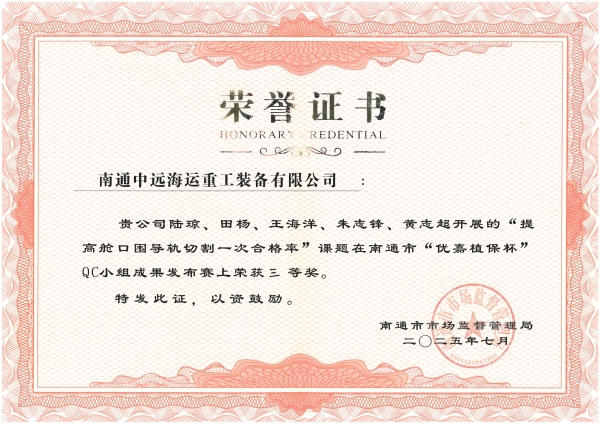 近日,在南通市“优嘉植保杯”QC小组成果发布赛中,南通重工装备 “乘风破浪QC小组”课题《提高舱口围导轨切割一次合格率》,从众多优秀参赛成果中脱颖而出,荣获三等奖。 此次QC小组成果发布赛汇聚了南通市多家知名企业的优秀QC小组,项目涵盖质量改进、流程优化等多个方面。发布赛竞争激烈、精彩纷呈。公司课题成果紧贴一线实际,聚焦生产难点,围绕提升零件切割质量和作业效率,深入开展课题研究与攻关。最终,在成果发布现场,以扎实的分析逻辑、详实的数据支撑和出色的汇报表现赢得了评委的高度认可。 长期以来,公司在质量改进道路上不断探索与深耕,形成了浓厚的质量改善氛围,连续多年QC小组成果在各类比赛中获奖。未来,公司将不断提升质量管理水平与创新能力,为高质量发展注入源源动力。(陆琼) |